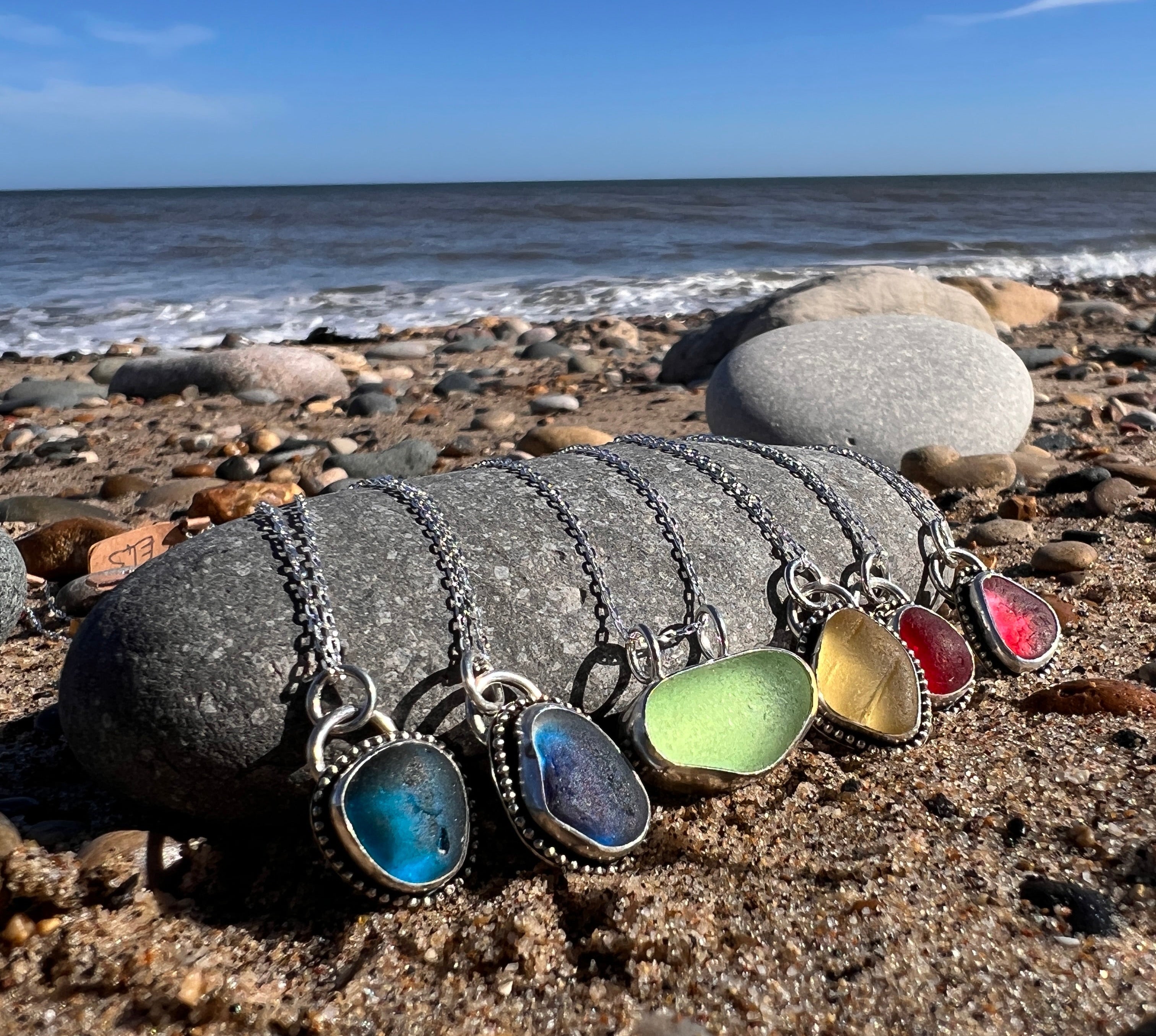 Bracelets and cuffs made using sterling silver, sea glass and semi precious...