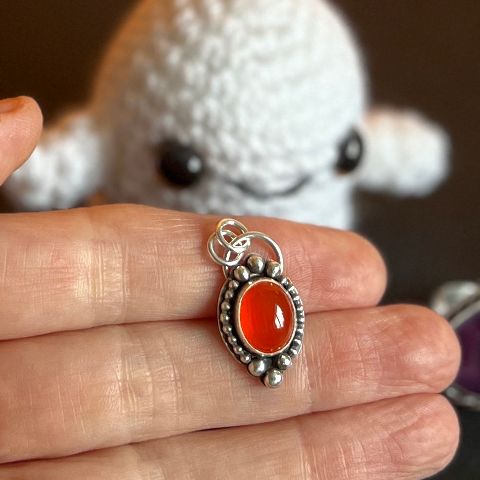 Sterling silver and a bright orange chalcedony cabochon have been used to create this pendant. A great every day piece of jewellery. **This is for the pendant only**