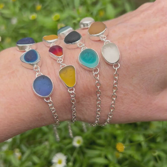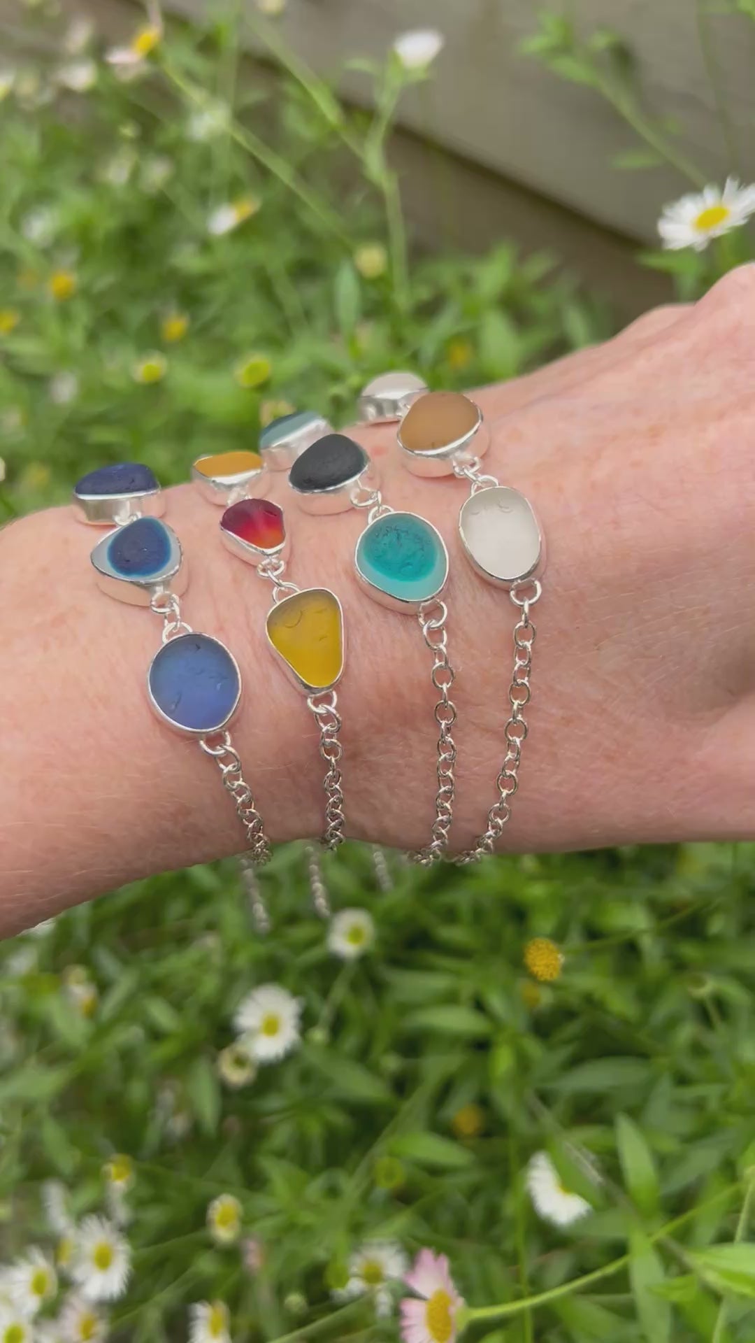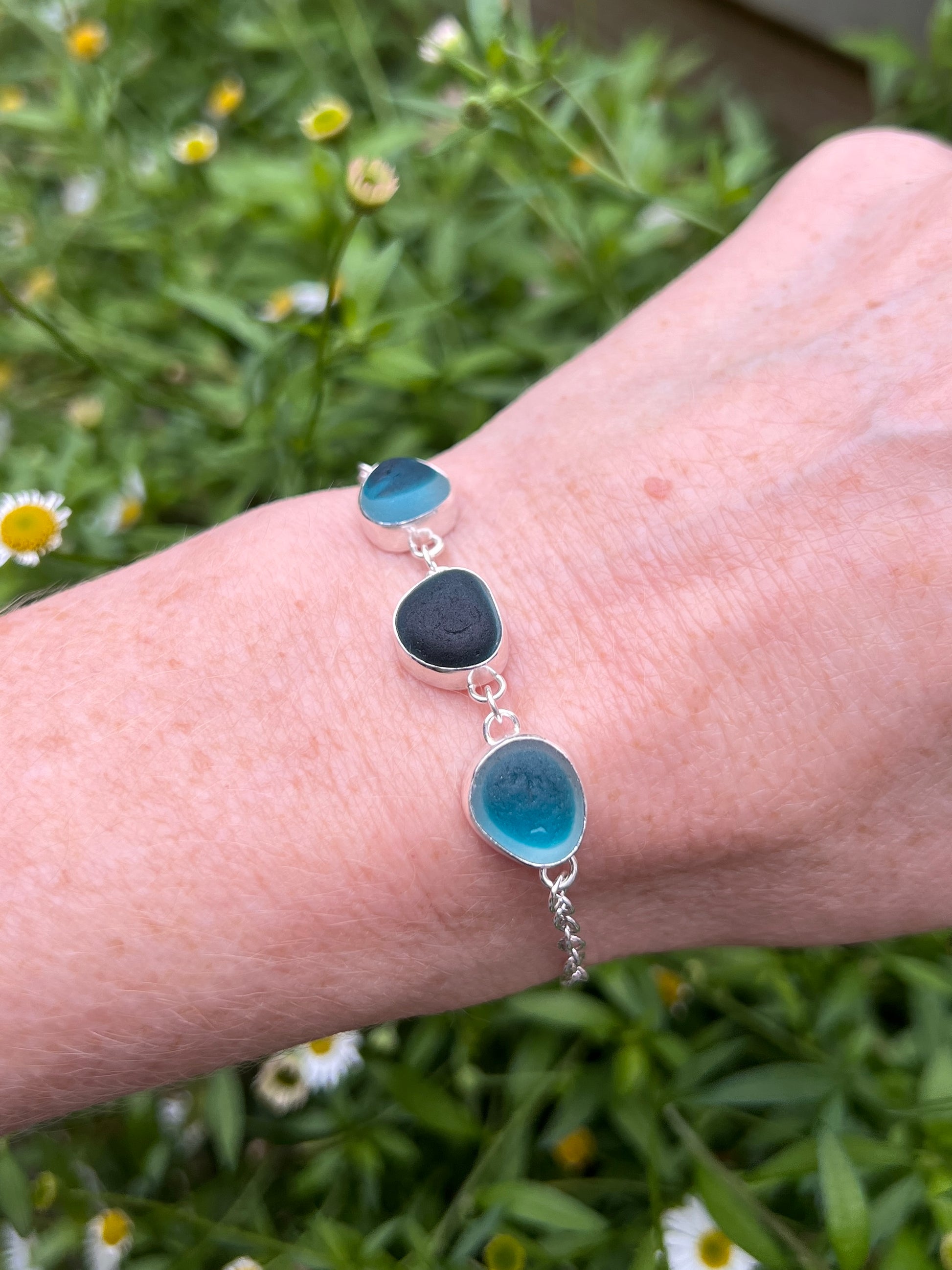 Adjustable silver bracelet set with 3 pieces of coordinating sea glass.