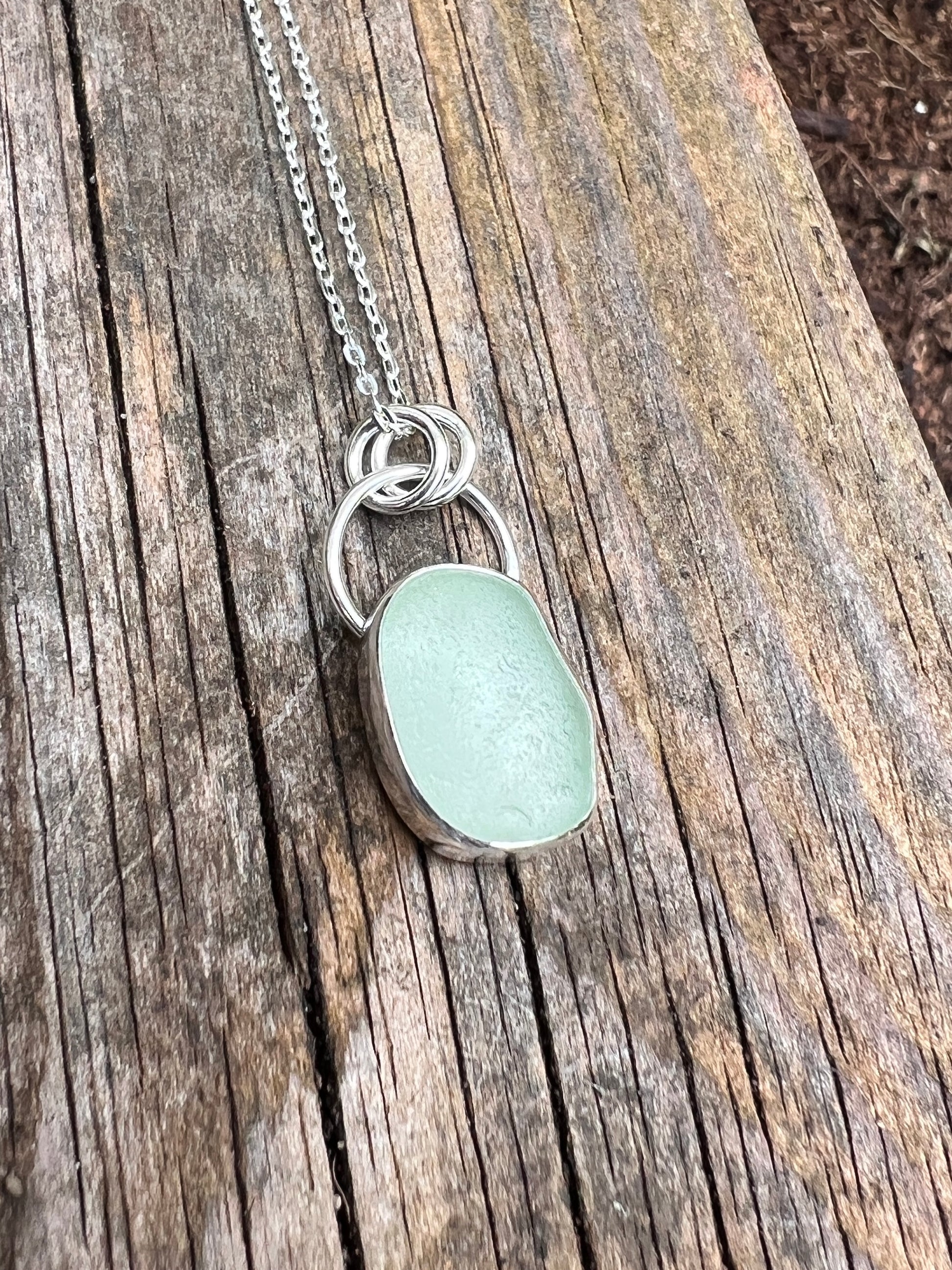 Sterling silver and a lovely piece of seafoam sea glass have been used to create this pendant. A great every day piece of jewellery.