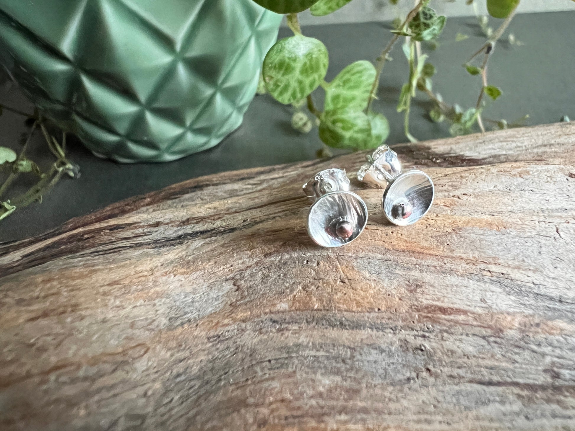 I have made these simple studs using recycled sterling silver. Each studs has a sterling silver post and butterfly fastening on the back.