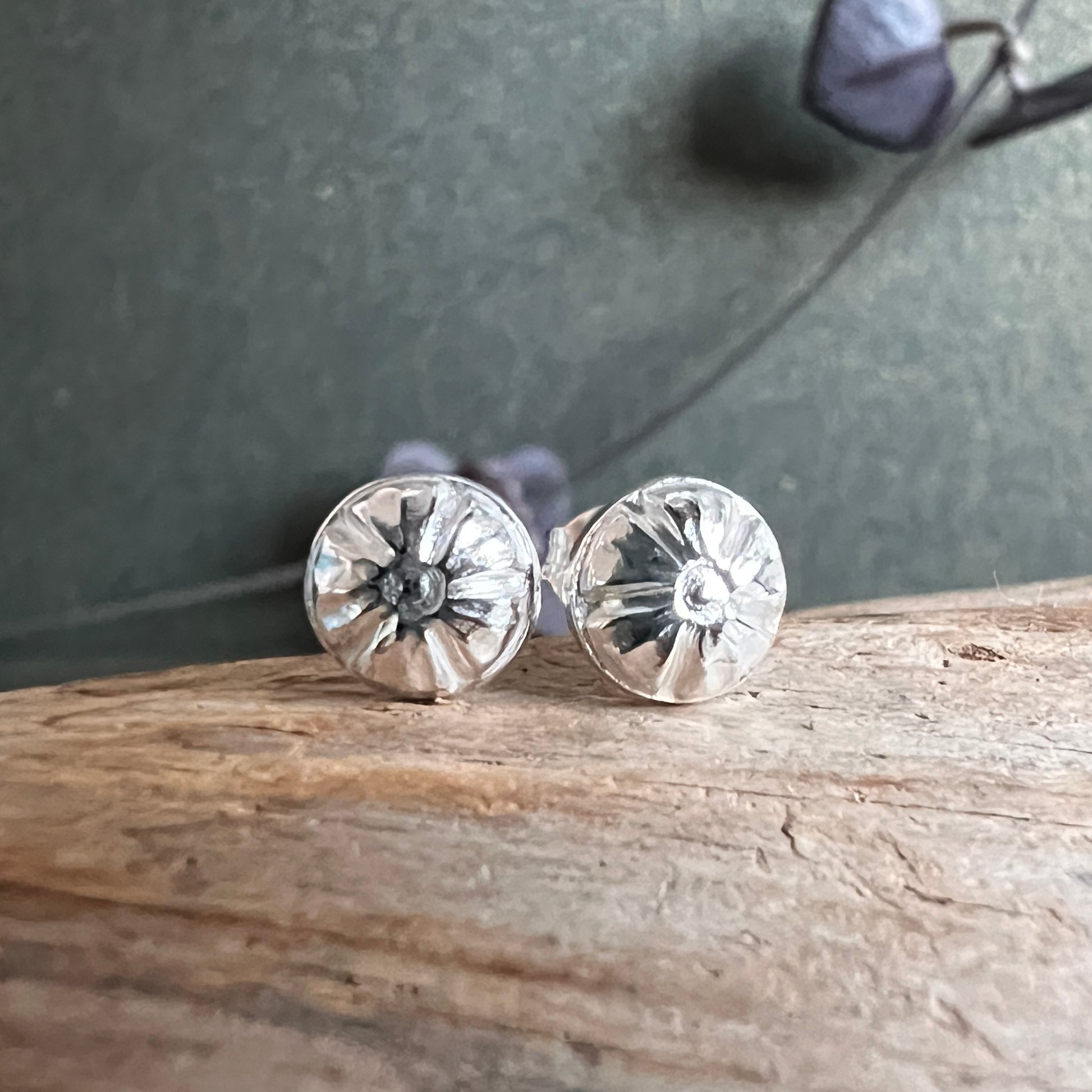 I have made these simple studs using recycled sterling silver. Each studs has a sterling silver post and butterfly fastening on the back.