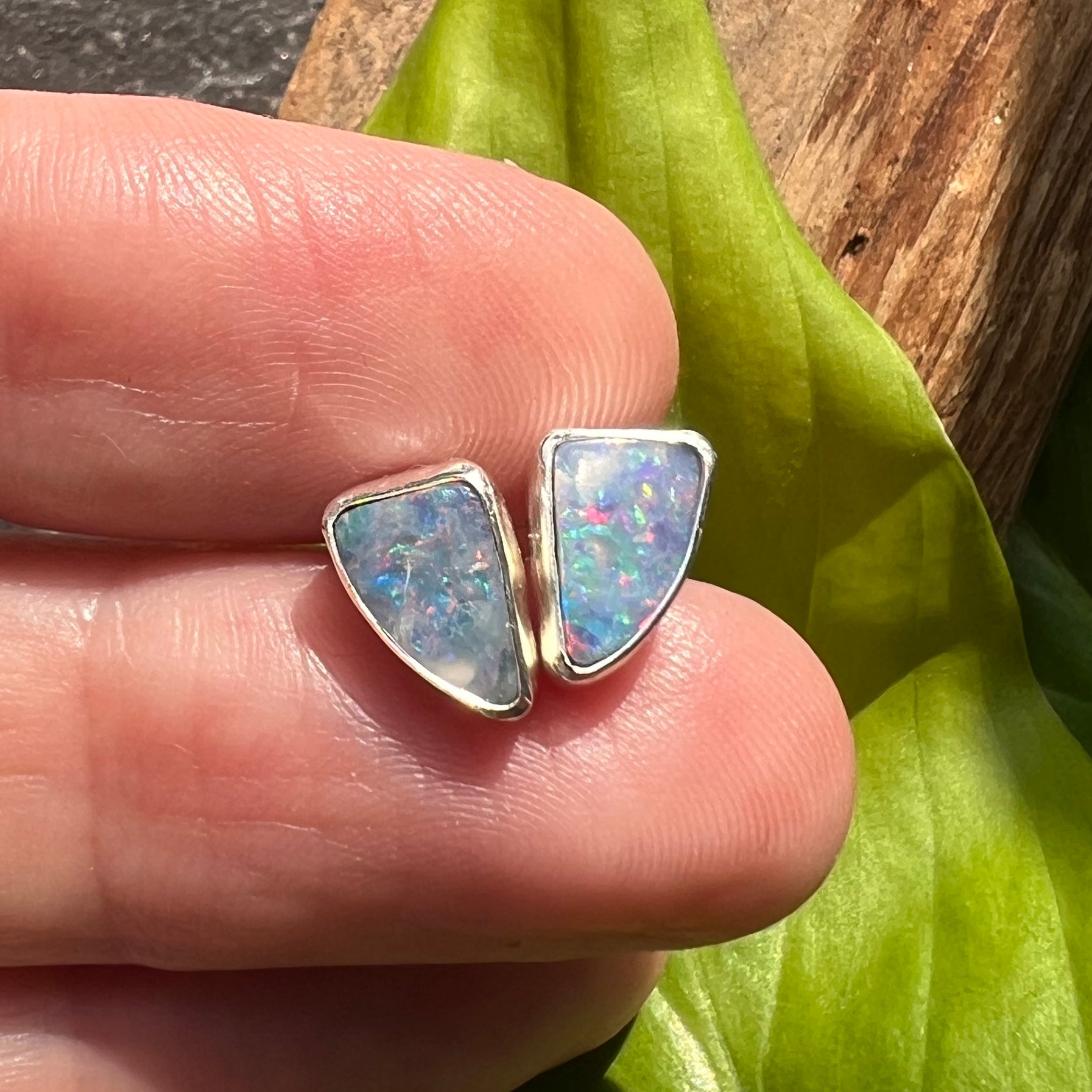 I have made these lovely little earrings using Australian Opal doublets sterling and fine silver. These studs are a lightweight so they are perfect for everyday wear.